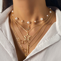 VKME Retro Punk Style Butterfly Heart Star Moon Multilayer Necklace Set for Women Jewelry Wholesale
